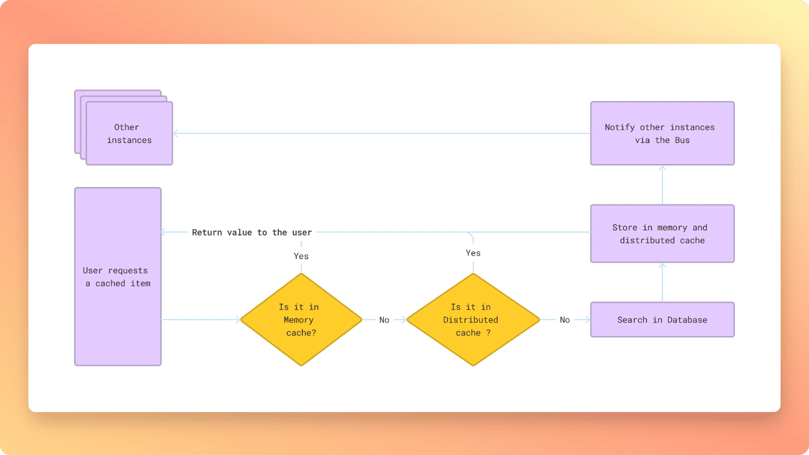 - Synchronization via Bus: In a multi-instance context, you can synchronize different local in-memory caches of your instances via a Bus like Redis or RabbitMQ. This method maintains cache integrity across multiple instances
